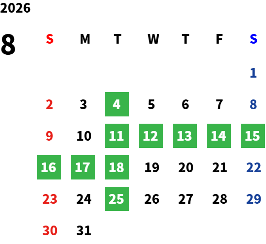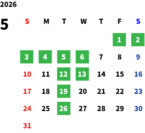 平日の祝日・GW・お盆・年末年始