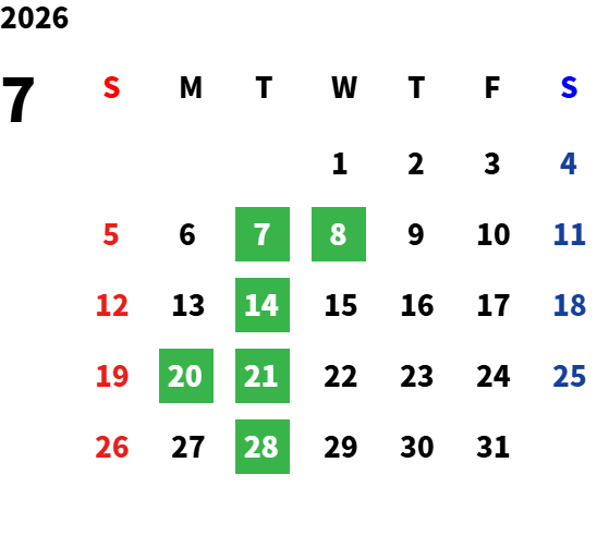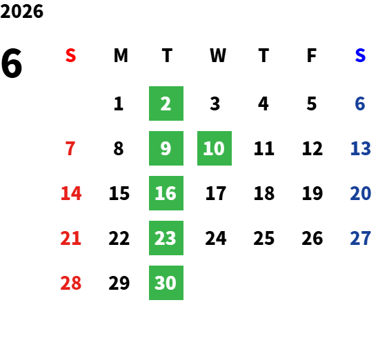 毎週火曜日・第2水曜日