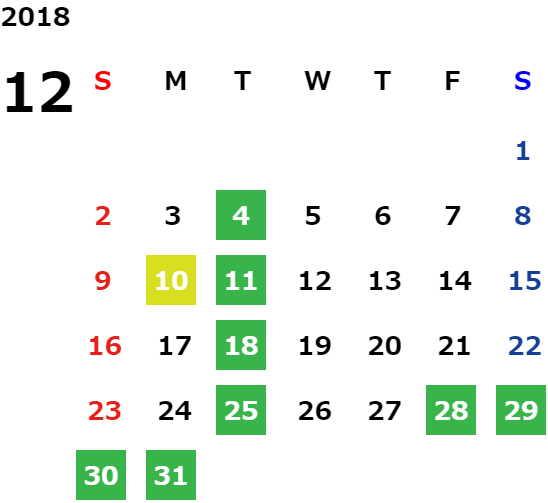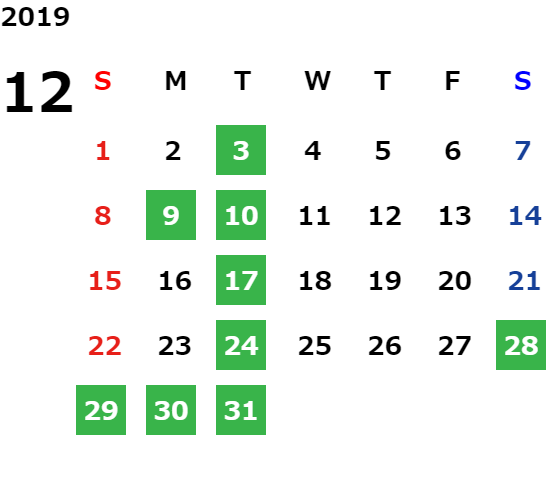 平日の祝日・GW・お盆・年末年始