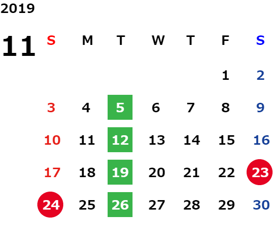 毎週火曜日・第2水曜日