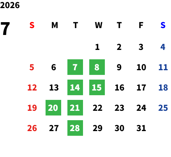 毎週火曜日・第2水曜日