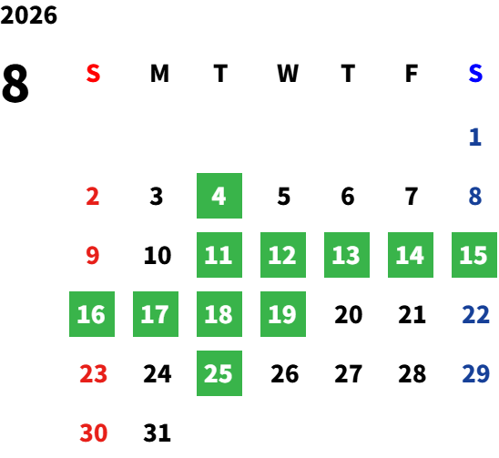 平日の祝日・GW・お盆・年末年始